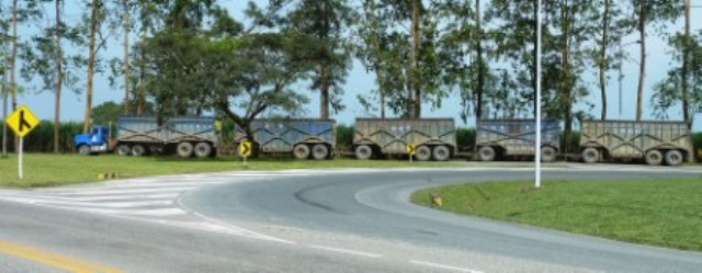 In dieser Gegend gibt es sehr viel Zuckerrohr und wir stellen fest, dass die kolumbianischen Zuckerrohr-LKWs mit vier Anhängern